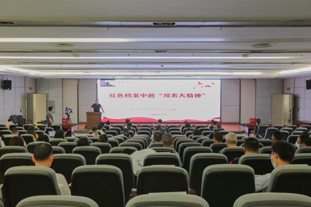 5月31日下午,“川农大精神”大讲堂系列讲座持续开展,原党委书记、校长文心田以《“川农大精神”永放光芒》为题,校党委副书记张强以《校史·川农大精神再探究》为题,学校档案馆馆长潘坤以《红色档案中的“川农大精神”》为题进行讲述。39个中层单位的师生员工在13个会场集中聆听讲座。