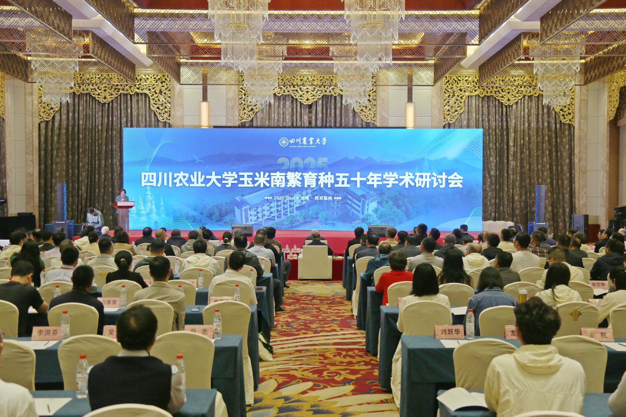 种业春秋五十载,风华正茂启新程。1月4日上午,学校在西双版纳隆重举行玉米南繁育种五十年学术研讨会。党委书记刘登才、校长吴德、荣廷昭院士、云南农业大学名誉校长朱有勇院士、贵州大学校长宋宝安院士、华中农业大学校长严建兵、中国农业大学国家玉米改良中心主任赖锦盛以及我校副校长卢艳丽、王际睿,西双版纳州副州长高江泉、西南林业大学副校长何霞红、河南农业大学副校长汤继华等出席研讨会。