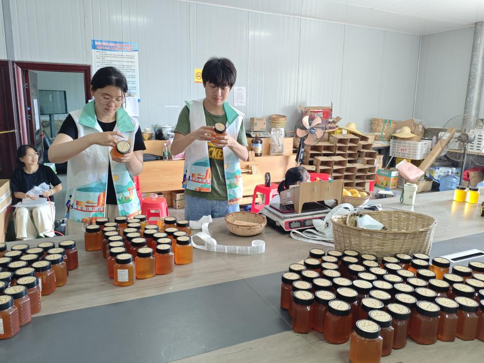 图为“川耘・红途” 实践团成员正在打包蜂蜜