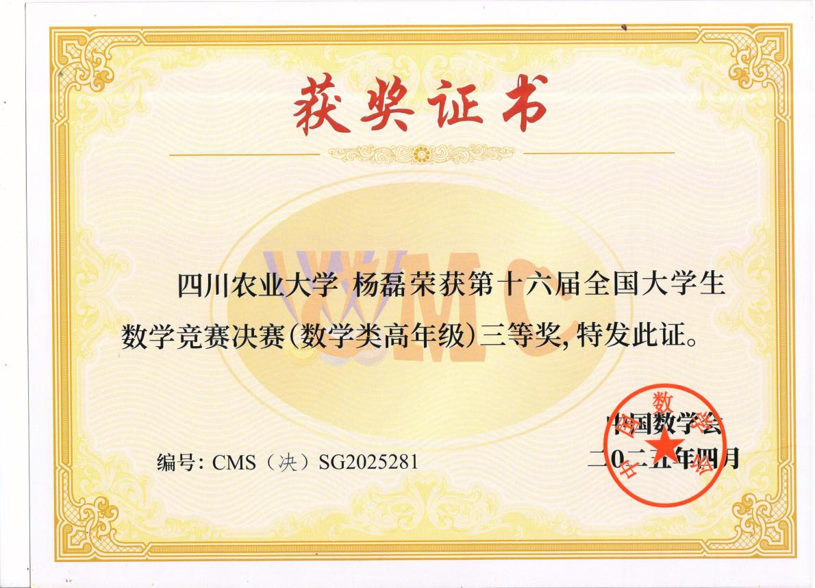 在省级赛段中,数学类专业组获一等奖3项、二等奖2项、三等奖1项;非数学类获一等奖15项、二等奖26项、三等奖49项,获奖数量与质量均创历史新高。在竞争尤为激烈的全国决赛中,我校信息与计算科学专业杨磊同学荣获三等奖。