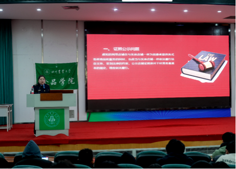 3月18日,食品学院联合雅安市市场监督局开展“法治护航新消费”公益宣讲,为600余名师生带来沉浸式普法课堂。讲座聚焦大学生高频消费场景,通过“直播带货翻车”“大数据杀熟”等12个典型案例,深度剖析证照公示、霸王条款等七类维权痛点。